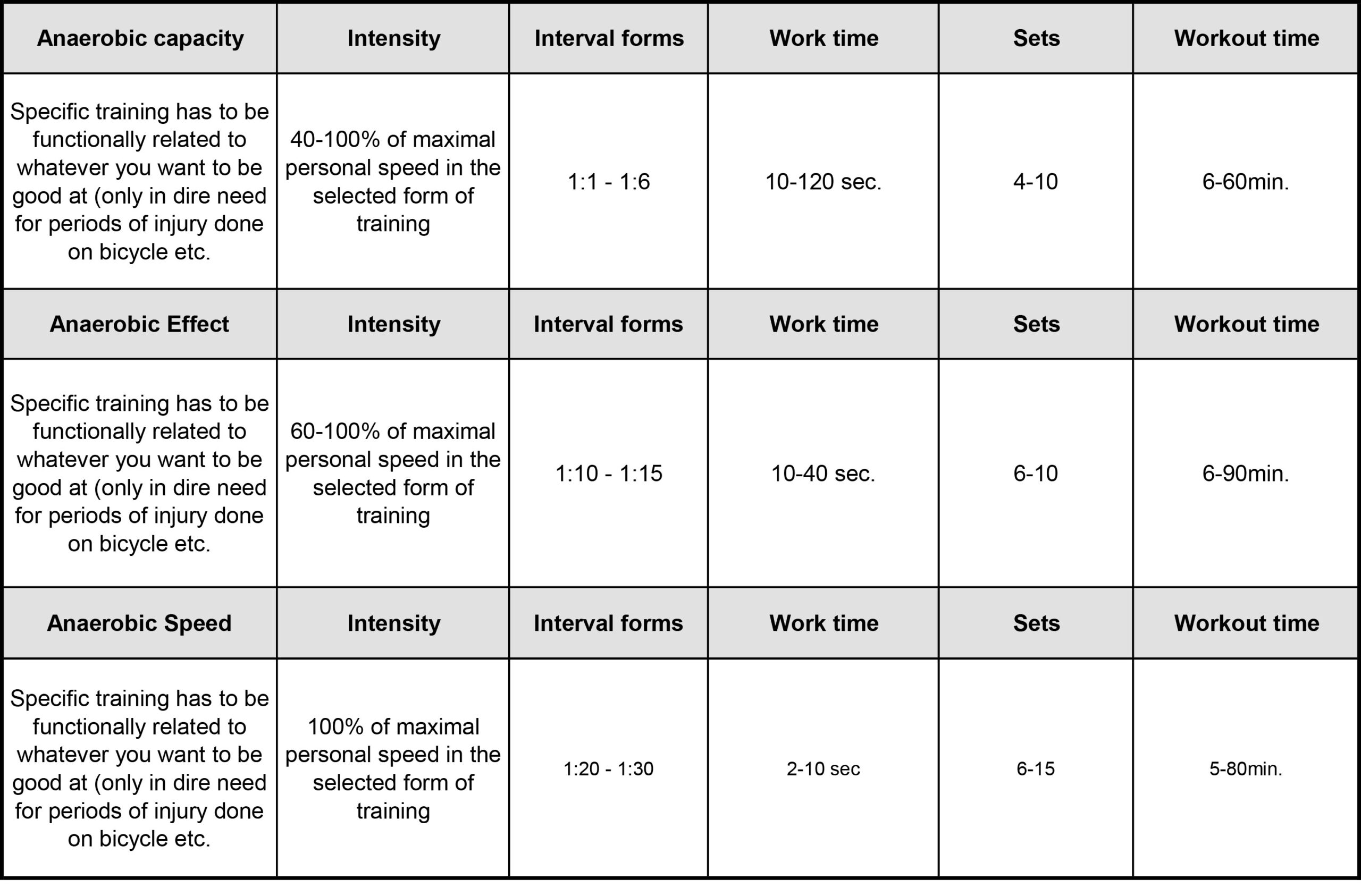 Anaerobic capacity (tolerance and fatigue training) & Anaerobic effect / speed (sprint training)