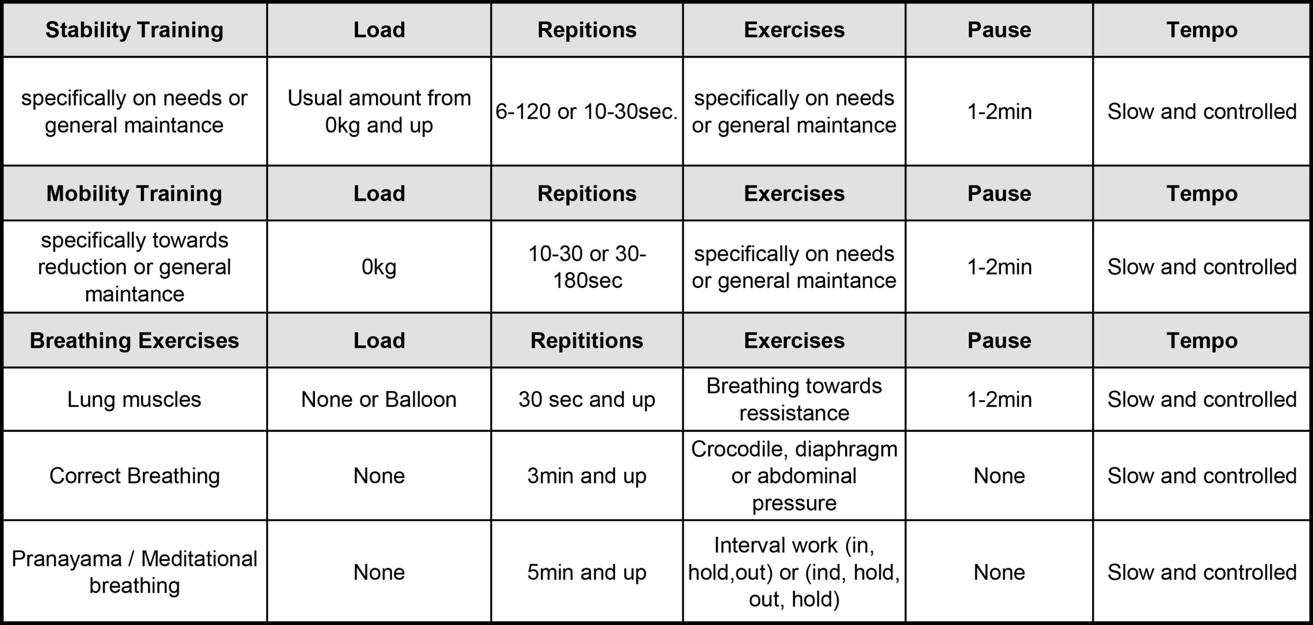 - The training aims towards normalizing breathing, and thereby form the foundation for good mobility, stability, and training in general.