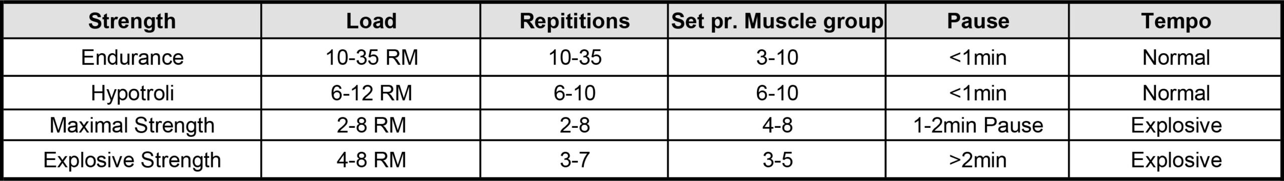- Optimal for the form of training is that you train with fewer repetitions than your RM weight. Ex. (5RM 3 repetitions). This is done so as not to tire out the muscle and nervous system, so that the explosive movement can be performed in all sets.